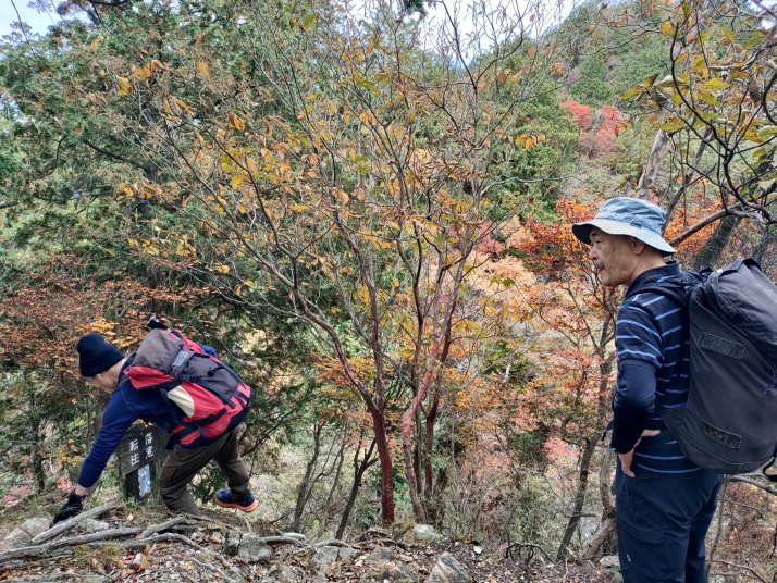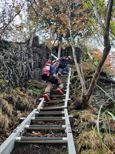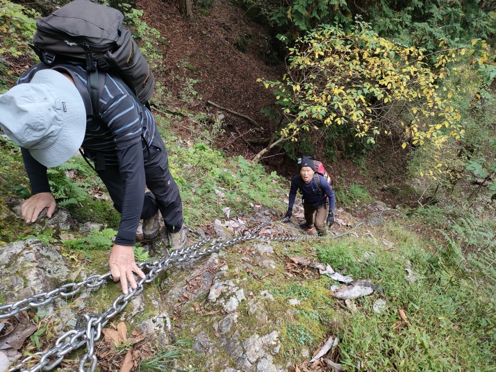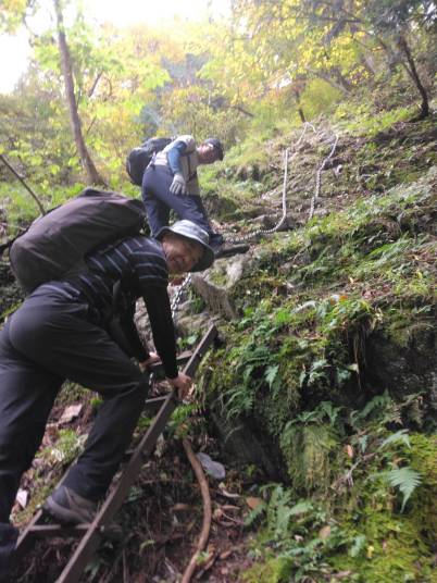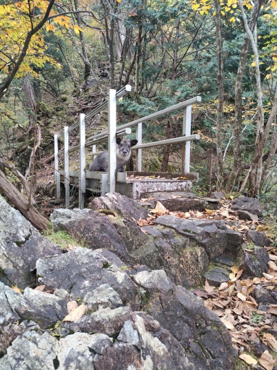 岩尾根を登ってゆくと熊が!!・・・ではなく、カモシカが通せんぼしていました。スリリングなハイクを楽しみました。